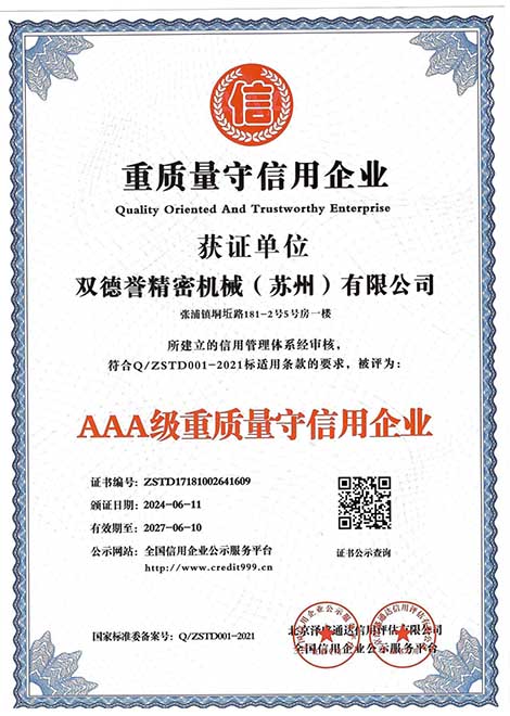重質(zhì)量守信用企業(yè)-雙德譽(yù)精密機(jī)械(蘇州)有限公司