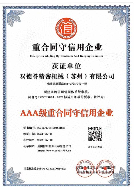 重合同守信用企業(yè)-雙德譽(yù)精密機(jī)械(蘇州)有限公司