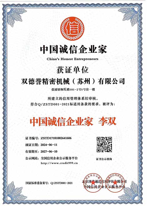 中國誠信企業(yè)家-雙德譽(yù)精密機(jī)械(蘇州)有限公司