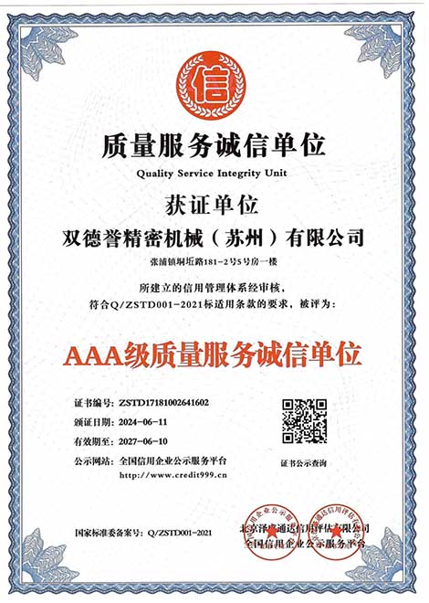 質(zhì)量服務(wù)誠信單位-雙德譽(yù)精密機(jī)械(蘇州)有限公司